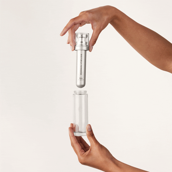 Never run out! Recyclable inner vial slides and twists into the reusable glass bottle of Total RF Serum for an instant, easy refill.